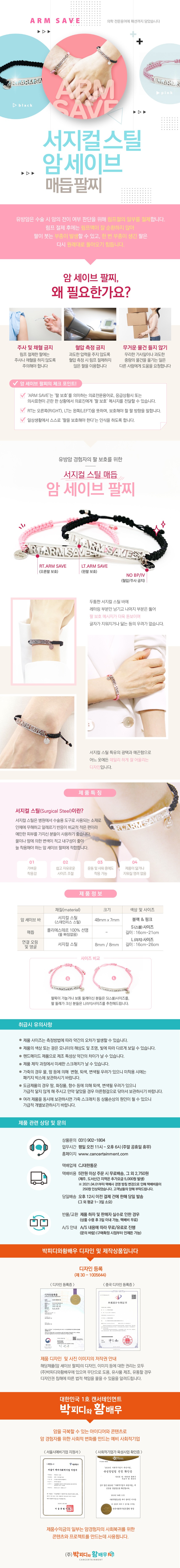 *무료배송* [유방암 팔찌] 암세이브 림프부종 인식 암환자 팔보호 팔찌선물 (실버 925)